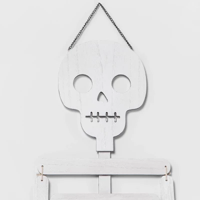 Direct everyone the right way to the frightening festivities with this Skeleton Wood Porch Halloween Sign from Hyde & EEK! Boutique™. Carved out of wood and to look like a skeleton, this skeleton Halloween sign lends ghoulish appeal to your festive decor. Easy to hang over the door or wall, this wood porch sign is perfect to finish off your Halloween decor with spooky style.